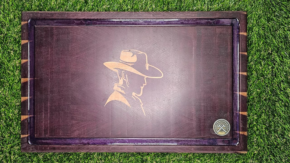 Tábua de corte para churrasco End Grain Inlay Cowboy Madeira Roxinho